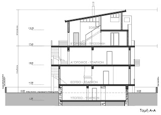 Ο πέτρινος φέρων οργανισμός στο υπάρχον ημιυπόγειο είναι χτισμένος περί το 1940 με τα ίδια τα χέρια των τότε ιδιοκτητών. Εκεί μένει η γιαγιά! Το επίσης υπάρχον ισόγειο και α’ όροφος είναι μεταγενέστερη κατασκευή των αρχών του ‘80 από οπλισμένο σκυρόδεμα. Εκεί μένει η μητέρα! Σε τρίτη φάση, σήμερα, προστέθηκε β’ όροφος από συστήματα ξηράς δόμησης αφού ο «κακοδουλεμένος» και παλιός φέροντας οργανισμός δεν θα μπορούσε να αντέξει περισσότερα φορτία! Εκεί θα μείνει η κόρη! Με αμαρτήματα υπερβάσεων δόμησης στις πλάγιες αποστάσεις και πράξεις εξαίρεσης από κατεδάφιση τέθηκε επιπλέον περιορισμός στο δικαιούμενο κέλυφος της δόμησης. Οι πλάγιες αποστάσεις και τα ύψη έπρεπε να τηρηθούν!